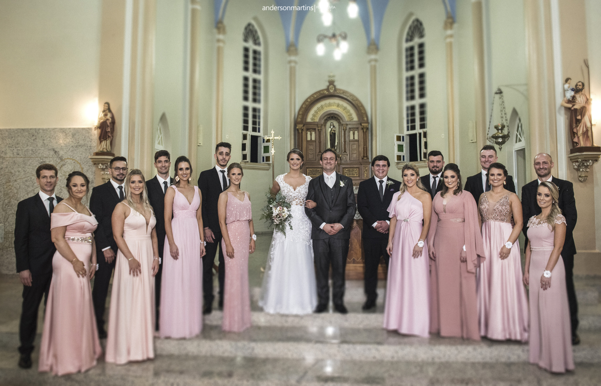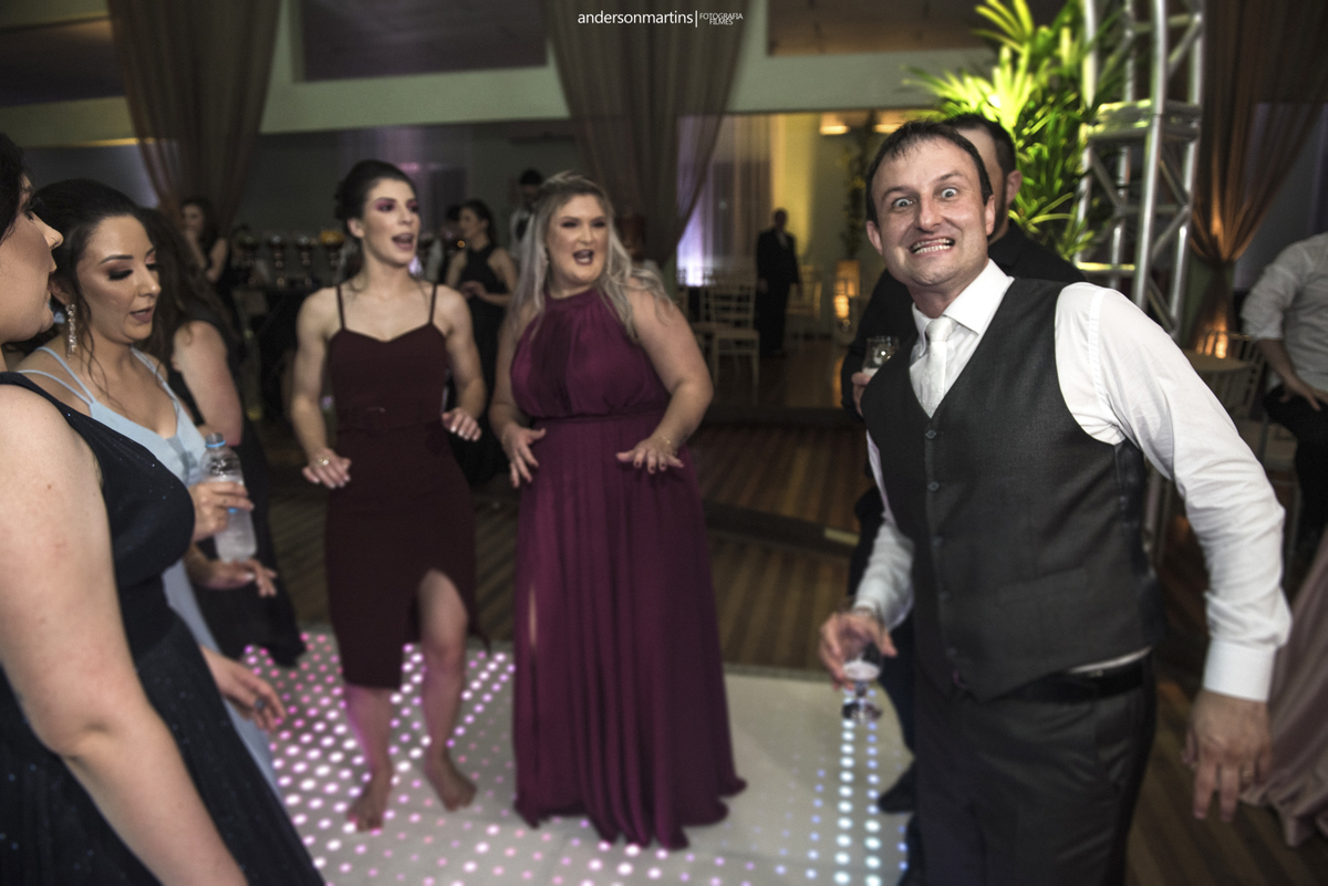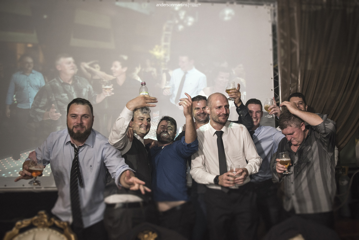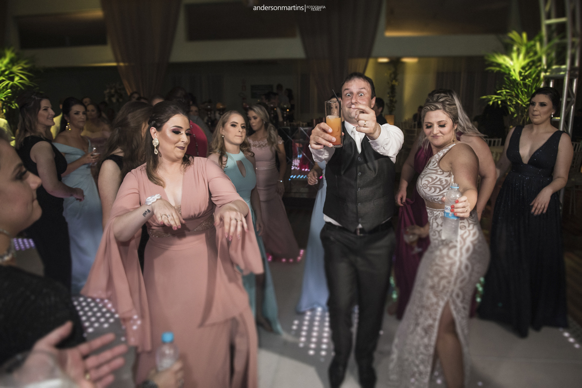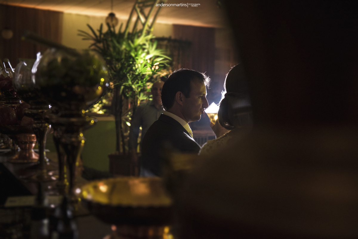 Família, amigos, colegas de trabalho, todos celebrando o amor desse casal. Amor esse que transborda a cada troca de olhar, e é fácil observar e perceber o carinho e admiração que um carrega do outro.