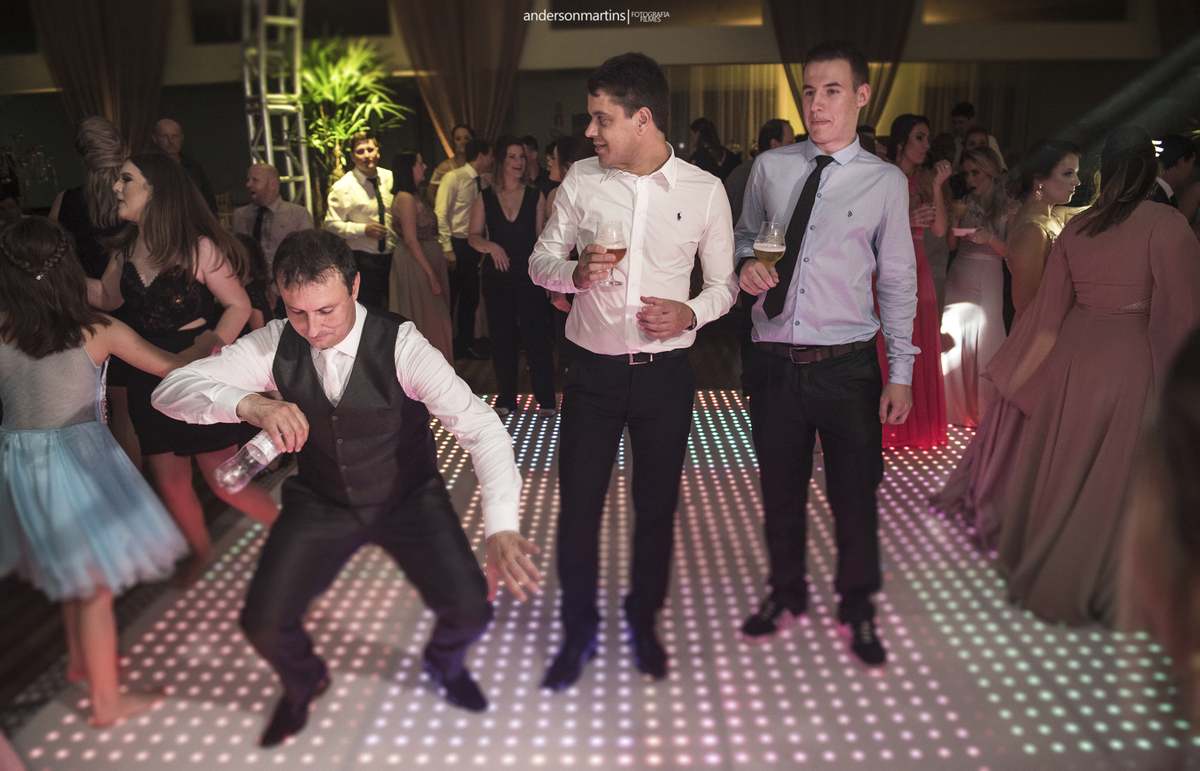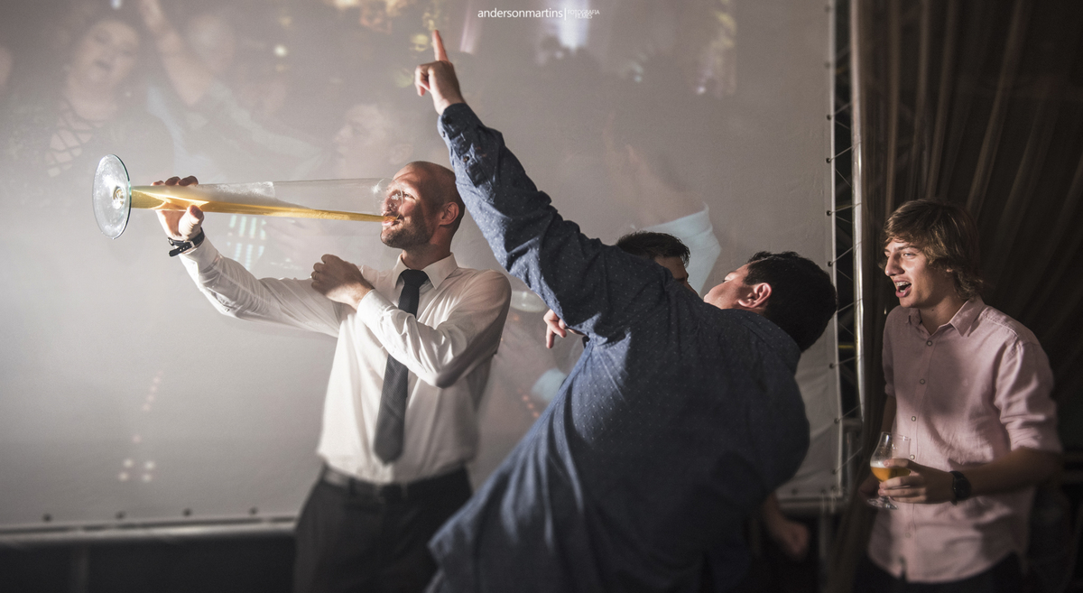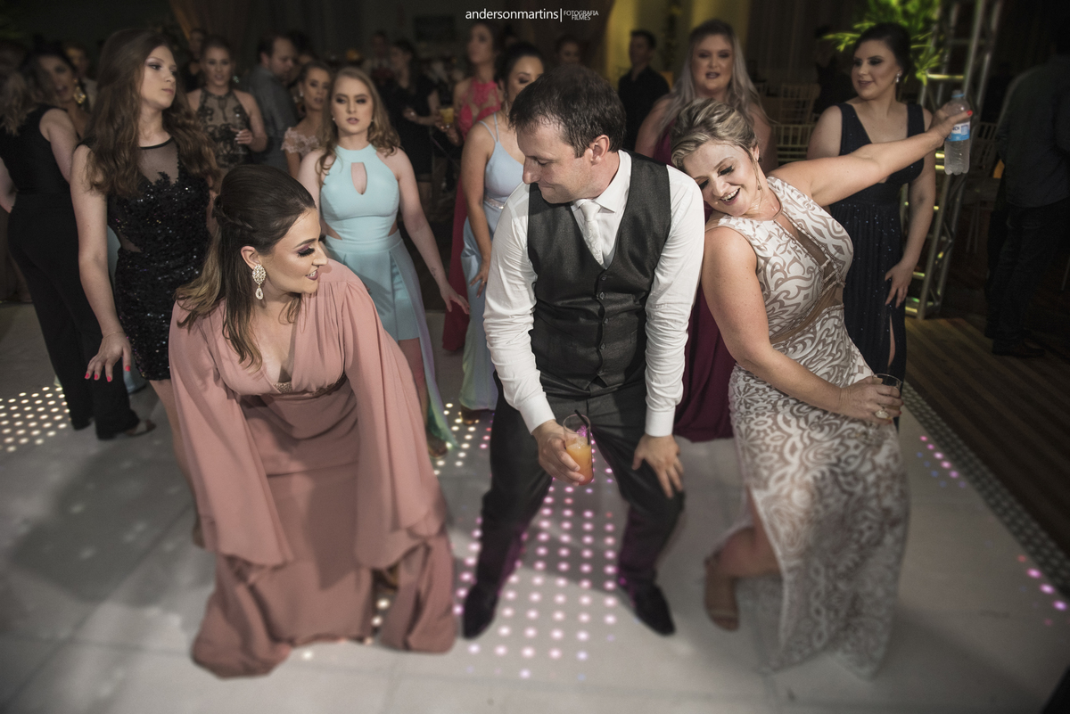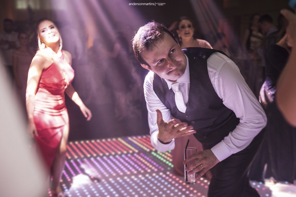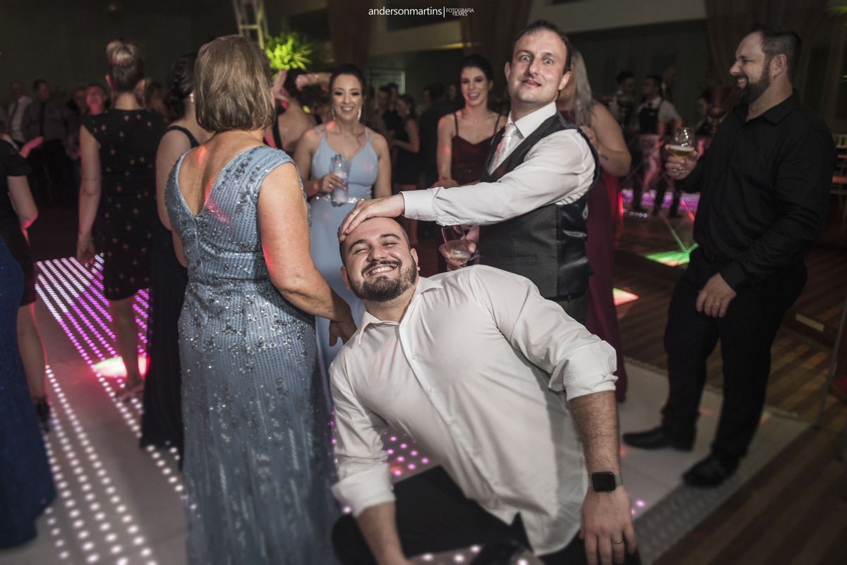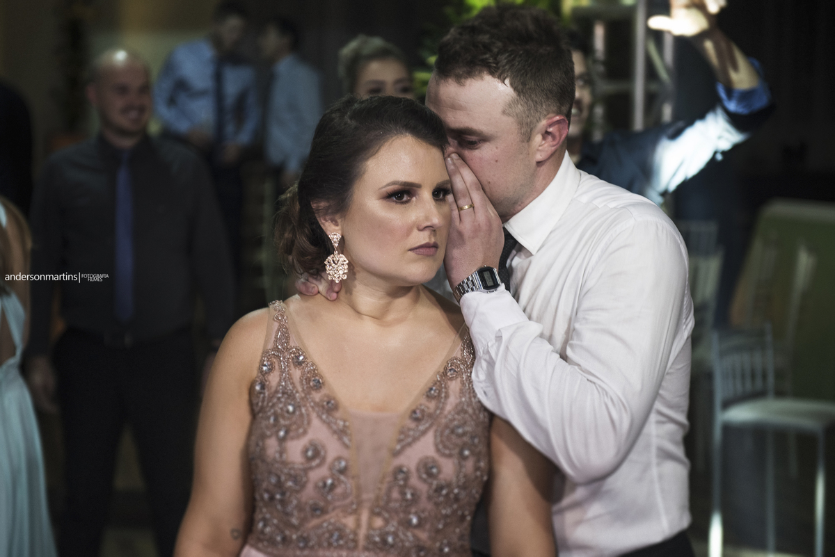 Família, amigos, colegas de trabalho, todos celebrando o amor desse casal. Amor esse que transborda a cada troca de olhar, e é fácil observar e perceber o carinho e admiração que um carrega do outro.